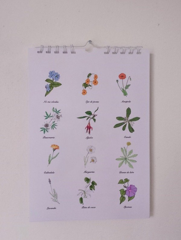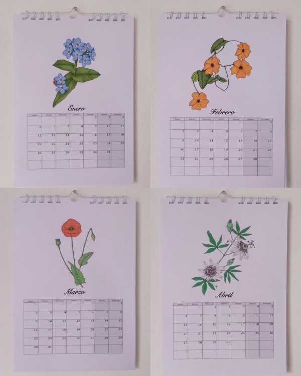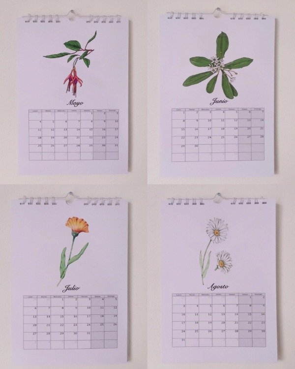 Elegimos las flores como protagonistas y cada mes tiene una de ellas. Además agregamos espacio para que puedas escribir tus actividades casa día.